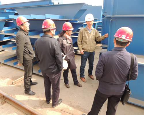 在我公司總工程師石永勝和生產(chǎn)基地經(jīng)理呂瑞軍的陪同下先后參觀了公司生產(chǎn)車間、涂裝車間以及構(gòu)件成品區(qū),對公司整體生產(chǎn)情況進(jìn)行了詳細(xì)了解,并對我公司的制造工藝給予了大的贊許,隨后在生產(chǎn)基地會(huì)議室召開了交流座談會(huì)。